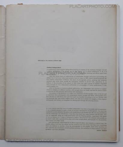 Comments: A portfolio of loose photo-illustrations (some mounted, some on folded sheets), on various paperstock, 330 x 270 mm. Some illustrations have printed tissue or acetate overlays. First edition, 1957. Text in English. Design by G. Mansolas, Ray Metzker and T.Rago. Includes one original black and white silver print (by H. Callahan) mounted on card stock. some wears to the covers. EXTREMELY SCARCE!!