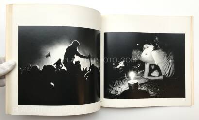 "Music was only played at night so the most pleasurable thing to do in that tremendous heat was to go swimming, especially since we all swam in the nude. Being at the river, with all those people, laughing and naked in the water, made me think that we had returned to the time of an ancient mythology. Usually, when we look at each other in clothes we make evaluations but nakedness makes it difficult to distinguish people from each other. It makes everybody equal... My reason for going to this festival was not primarily to photograph, but simply to take part in the life of the country for a few days as a lover of rock and country music. In this book I have only focused on the everyday life of the participants. Taking the photographs made it possible for me to verify my own experience of the festival... somewhere in myself the part of me which is a photographer was also existing. But I did not want to destroy myself as a participant in order to take the pictures... This book was formed from a delicate balance of my act of living there as a participant and my taking photographs as an operation. I lived together with the people there and this book is a portrait of the time we shared."--Ikko Narahara, afterward.
