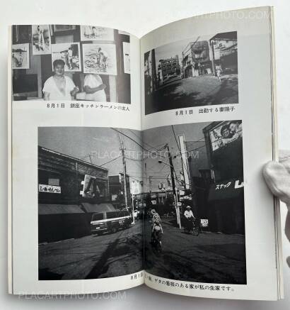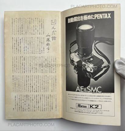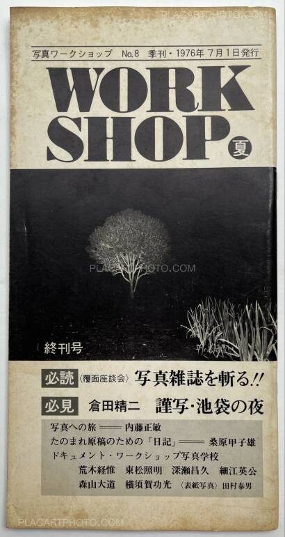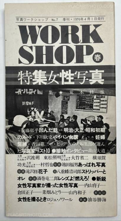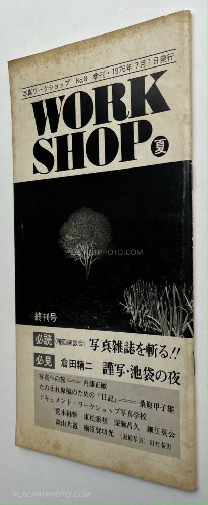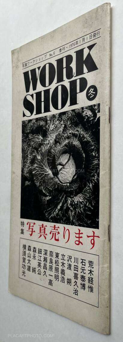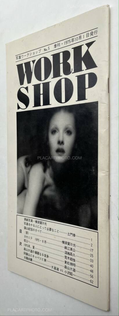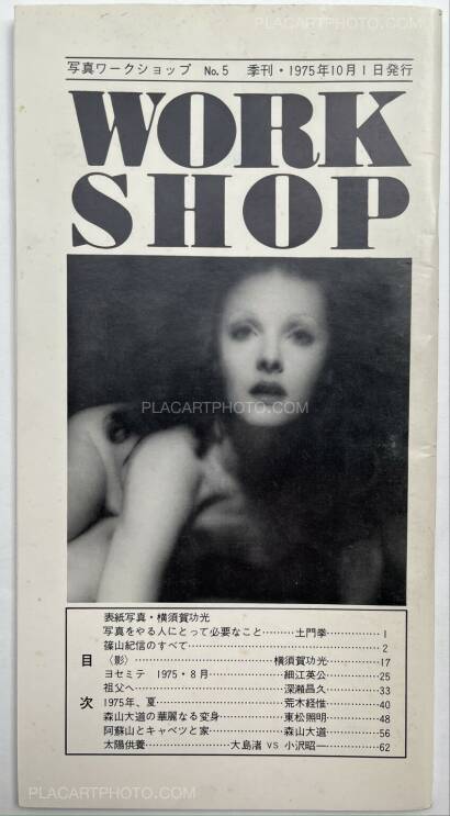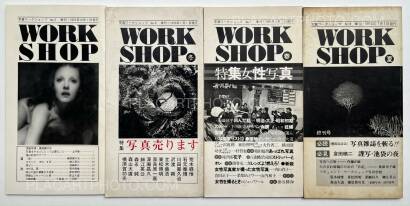 Workshop is the name of the photography school of which the first class was held April 22 1974. This school was comprised of classes by six important Japanese photographers: Nobuyoshi Araki, Shomei Tomatsu, Masahisa Fukase, Eikoh Hosoe, Daido Moriyama, and Noriaki Yokosuka, who also edited these issues. These last four editions of Workshop are stapled softcovers in vertical layout, and are comprised of photos, texts, and dialogues by these six photographers. The editing differs from the first four issues in that there is not necessarily a specific organization of the subjects depicted by the photographers.